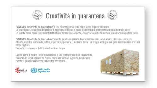 “COVID19 Creatività in quarantena” è una divagazione sul tema come forma di intrattenimento.
