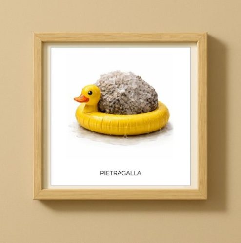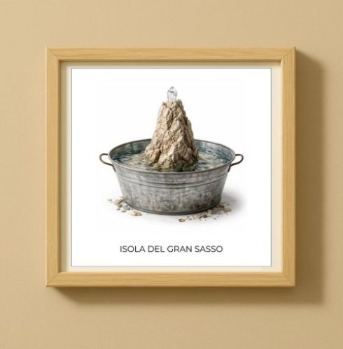 Esatte e sbagliate nello stesso momento. I luoghi smettono di essere geografia e diventano oggetti, concreti e leggermente fuori posto. L’immagine, immobile, trattiene un gesto assurdo come fosse naturale.