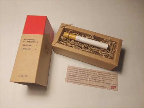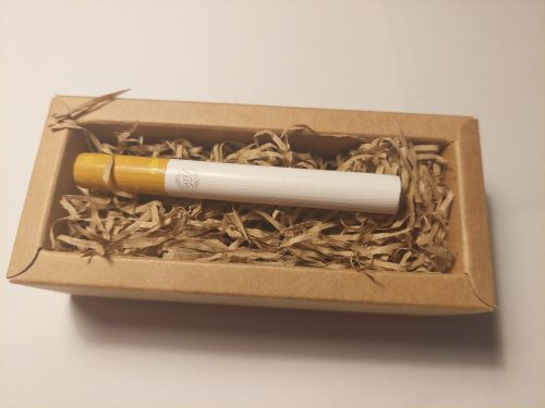 MINI KING SIZE: è una serie limitata di repliche in legno in scala 1:1 delle tradizionali sigarette presenti sul mercato. Pensata per ex-fumatori o aspiranti tali, compensa la gestualità tipica di chi ama tenere una sigaretta tra le dita ed insegna a fumare soltanto pensando di farlo. Un pò come da bambini quando si scimmiottava il mondo degli adulti portando alla bocca ciò che rimaneva di una matita